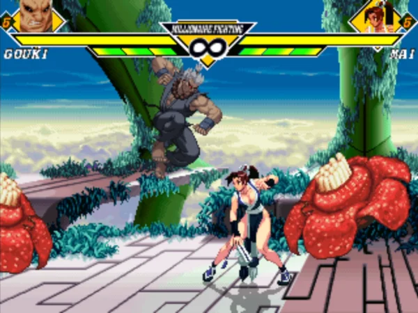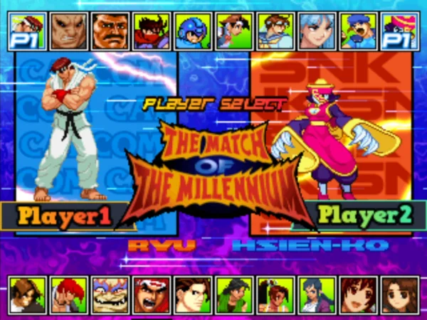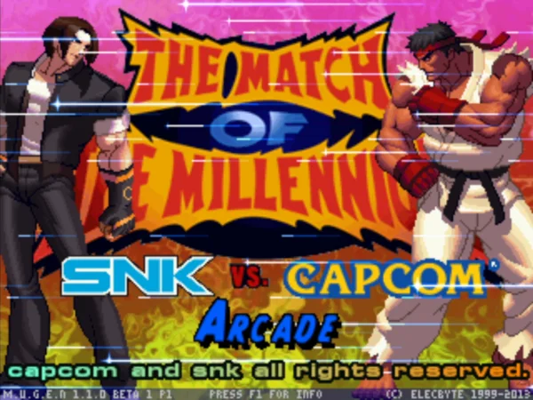 游戏的画面风格保持了街机的风格,可选人物在MUGEN游戏中来说并不多。两家格斗游戏厂商的大部分知名角色都有出战,包括了卡普空游戏中的隆、豪鬼、哈格市长、出击飞龙、洛克人、樱、莫尼卡、生化危机中的女性角色等,SNK出场人物则有草薙、八神、地震、风魔小次郎、由莉、不知火舞等人气角色,游戏的战斗画面华丽,连招丰富,是一个很不错的格斗类游戏!