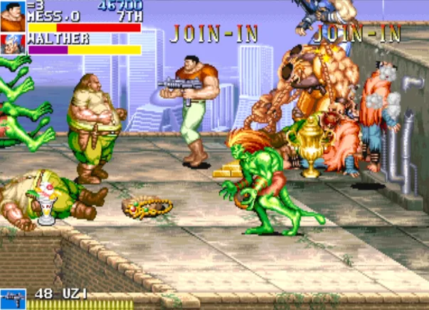 《恐龙快打血战版》是在“恐龙快打”原版基础上进行的一个改版游戏增加了很多怪,路人BOSS,血量补给也很充足,游戏整体来说还是非常难的,不过也是一个非常劲爽刺激的版本。以前发布的版本可能会出现乱码,此版本不会有此问题。