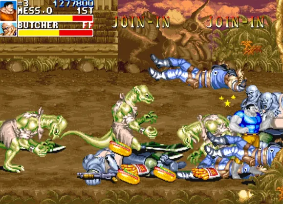 《恐龙快打》改版游戏的作者李惜利的2019年新年的第一个改版,游戏玩起来还是很爽的,游戏全程不断的有出现各种各样的BOSS,再加上主角只有两条血,这造成游戏的难度还是蛮大的。我方角色飞腿后会出现炸弹,如果没有这招的话,估计通关是不太可能的。随着关卡的变换,我方角色的颜色和敌方的颜色也会发生不断的变化,看上去也是非常有新意。文章源自阿飞游戏网-https://www.afeigame.cn/11153.html