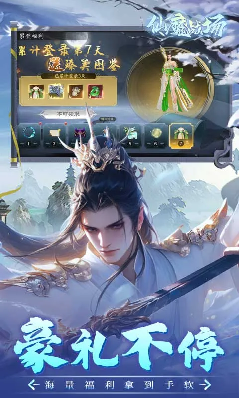 2.进游就送648充值券、88888元宝、道具礼包等海量福利!每日打卡可得3000灵玉卡!