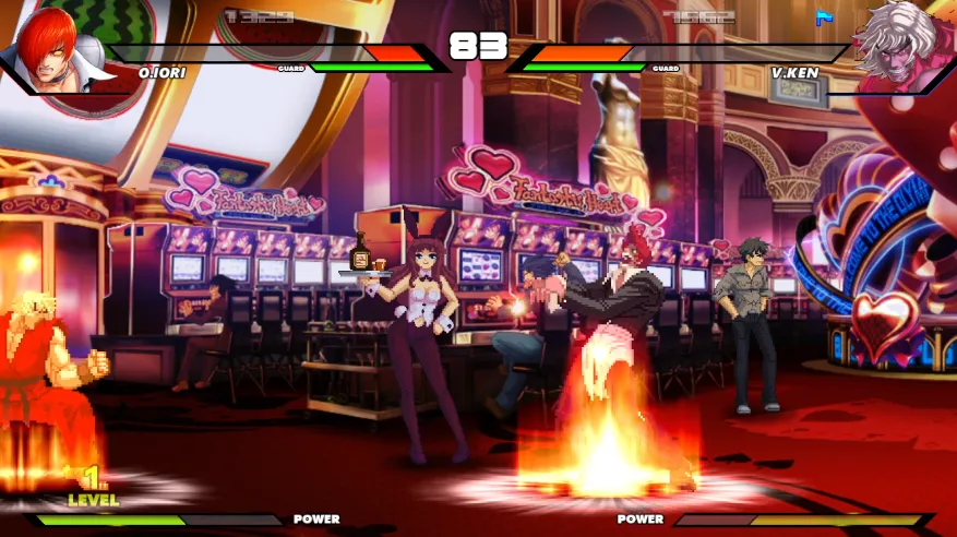 非常炫酷的一个拳皇格斗的整合游戏,游戏的主要角色都来自于卡普空和SNK的人物。我们熟悉的SNK的拳皇、侍魂、月华的剑士,卡普空的快打旋风、街头霸王系列、出击飞龙等经典游戏中的角色都有出场。有来自于拳皇八神、草薙京、龙虎之拳队、饿狼传说队、金家藩队等拳皇常驻角色,侍魂中的霸王丸、地震、黑暗霸王丸,月华的剑士中的长刀美女等经典角色。卡普空的话,街头霸王中的常驻角色隆、肯、春丽、古烈等,加上恶魔战士的性感莫尼卡、快打旋风中的哈格市长、出击飞龙中的飞龙等人气角色,还有杀意隆、黑暗肯、黑暗豪鬼等霸气角色。游戏的画面十分的炫丽,游戏的场景也很美观,加上精美的选人画面,华丽的连招,是一个非常不错的MUGEN格斗游戏。文章源自阿飞游戏网-https://www.afeigame.cn/11294.html