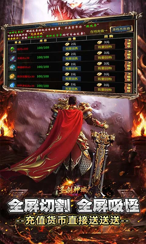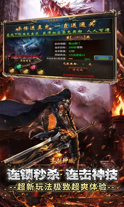 1、上线送全屏切割,全屏吸怪!杀怪领真充!