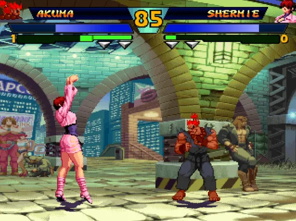 以SNK和卡普空的角色为主题的一个整合游戏,这个游戏相对于现在大型的整合游戏来说,游戏的容量还是很小的。相应的,游戏的可选的人物也不多,一共当前的版本只有14个角色可选。分别是来自于SNK的草薙、八神庵、不知火舞、贩崎由莉、特瑞、香澄、夏尔米。来自于街霸中的隆、肯、豪鬼、春丽、古烈、莫尼卡等角色。这个版本应该还是不最终版,不过游戏的背景和选人画面还是蛮好看的,所有的角色也保留了原版中的招式,算是一个不错的整合游戏!文章源自阿飞游戏网-https://www.afeigame.cn/11750.html