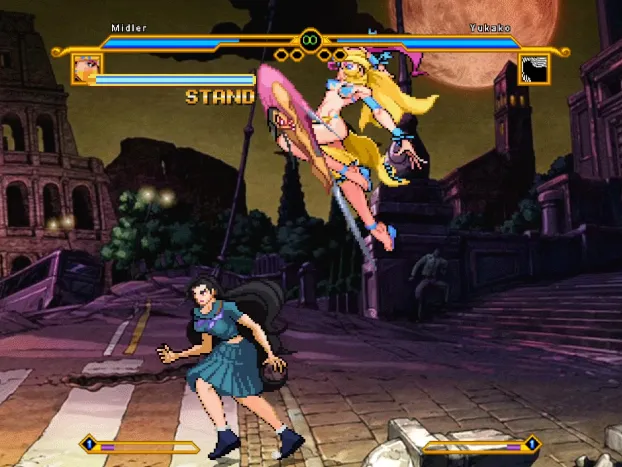 一款以JOJO的奇妙冒险为主题整合的游戏,游戏中的角色都是来着JOJO里面的角色,角色包括了第一季到第五季中的角色,有上百人之多,由于JOJO原本也有过街机游戏,所以角色看起来还是不错的。同时游戏还可以进行4V4模式,喜欢的小伙伴可以试试。文章源自阿飞游戏网-https://www.afeigame.cn/12064.html