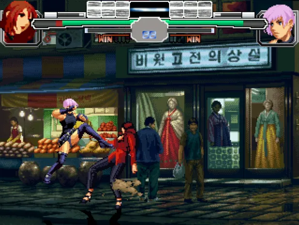 还算是一款不错的拳皇整合游戏,游戏的所有角色来自于拳皇94-2003中的出场人物。除了可以选择常驻的龙虎队、饿狼传说队、超能力队等经典角色之外,还可以使用各代的BOSS组成一队出战。游戏的人物招式保留着原版拳皇的风格,但是游戏的地图并不是非常丰富,经常很多角色共用一个地图。文章源自阿飞游戏网-https://www.afeigame.cn/12421.html