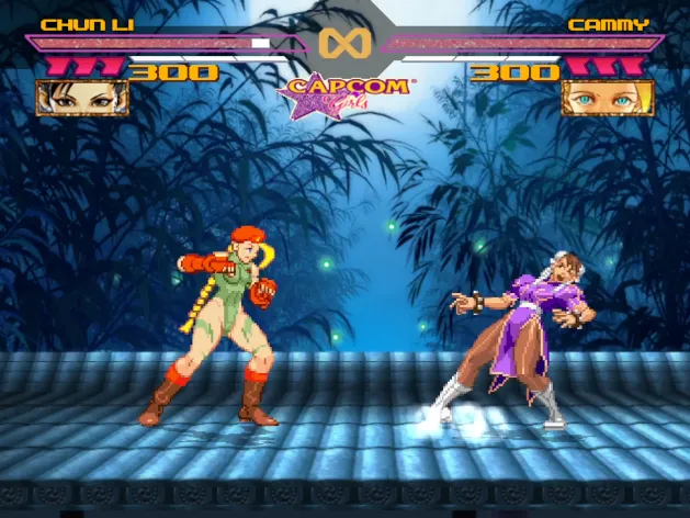 很有创意的一个MUGEN整合的格斗游戏,游戏的全部角色都来自于卡普空的不同游戏的美女。知名格斗美女街霸中的春丽、嘉米,快打旋风中的反派美女毒药,恶魔战士中的大奶美女莫尼卡都有出场。游戏的可选角色并不算太多,一共有24个不同的美女可选。文章源自阿飞游戏网-https://www.afeigame.cn/12458.html