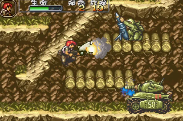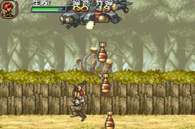 《合金弹头A》是snk经典名作《合金弹头》系列登陆gba平台的移动版本,游戏在画面表现上与街机版的基本保持一致,玩家可以从多种武器、炸弹中选择一个来开始游戏。不过令人觉得遗憾的是,由于gba机能的原因,本作的同屏敌人数量相当之少,这无不间接限制了游戏的爽快感和难度。文章源自阿飞游戏网-https://www.afeigame.cn/12579.html