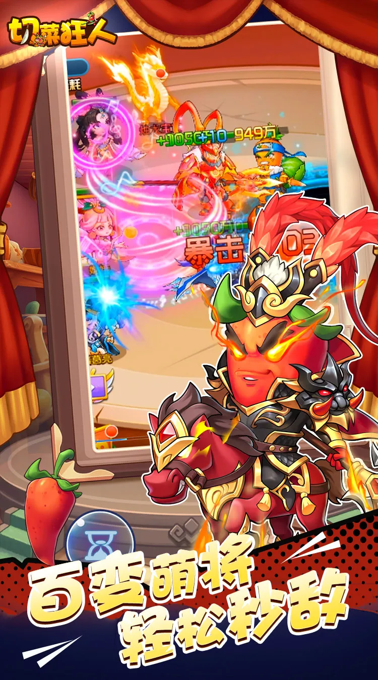 《切菜狂人》是一款超上头的Q版休闲挂机游戏。水果蔬菜混搭,形象搞怪萌态百变,新英雄新玩法,悟空、哪吒、八戒、赵云、关羽、吕布应有尽有,多样英雄任意搭配阵容,轻松闯关,还有大战僵尸,爬塔等趣味玩法,欢乐集结,畅玩不腻!创角648充值卡,悟空师徒与你一同过关斩将,绝世厨神竞技,食神之塔,艰险重重,你将勇往直行,击败强大敌人!
