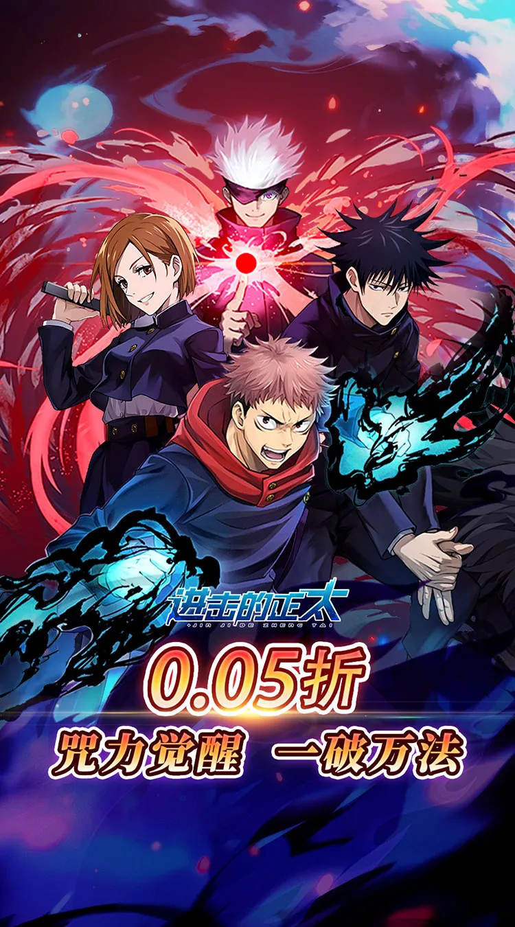 以超人气动漫《咒术回战》为蓝本打造的竖版卡牌策略手游《进击的正太》正式上线!全场充值统统0.05折,登录即可领人气英雄-虎杖悠仁、狗卷棘【末裔】!还有角色豪华礼盒领万元代金券,疯狂战令领千抽!在这里,你将化身咒术高专的导师,招募虎杖悠仁、伏黑惠、五条悟等经典角色,组建专属咒术小队,展开指尖高燃对决!文章源自阿飞游戏网-https://www.afeigame.cn/13899.html