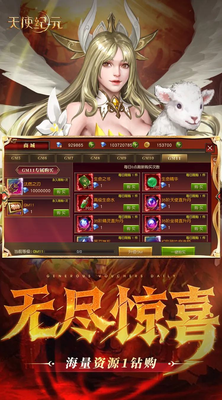 6、创角即送GM11、钻石*88w、绑钻88w、金币*888w、金钥匙*2、S级经验丹*10,等级直升200+,更有绝版称号:高爆爽充MU ,等你来拿