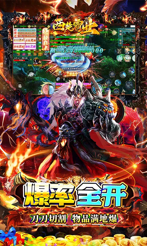 《西楚霸业(终极骷髅超超变)》是一款超爽爆充的散人爽服!上线全屏拾取,自动回收、刀刀切割3000000000,群体切割30000000、刀刀绿毒!酷爽福利嗨到爆!超变传奇,一秒十刀,刀刀切割,享受超爽打金快感,炫酷的技能特效,让玩家享受豪华的视觉盛宴!福利多活动多,散人逆袭为王!大陆多地图多,好玩不无聊!激情对战,热血攻沙,呼朋唤友,一起征战传奇世界!