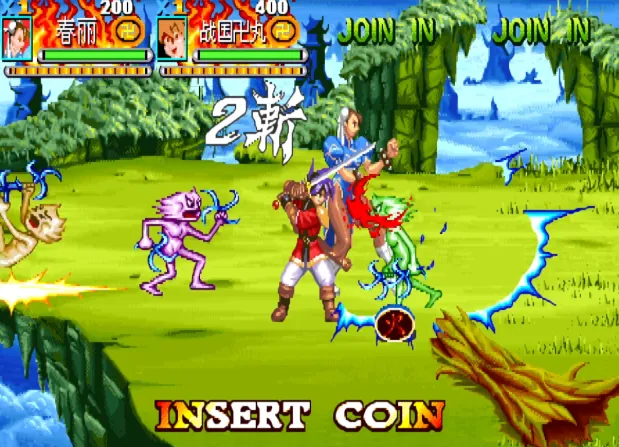 这个版本虽然叫做战国丸版,但实际上原版的5个角色全部被替换掉了,其中孙悟空被替换为天外魔境中的战国丸,是为火系;小龙鱼被替换为街霸中的春丽,是为金系;龙马被替换为拳皇中的金家藩,是为木系;猪八戒被替换为街霸中的隆,是为土系;沙悟净被替换为月华剑士中的李烈火,是为水系。每个角色都保留了在各自游戏中的招数,但是放法宝的时候还是放原版的法宝,是一个不错的改版游戏!文章源自阿飞游戏网-https://www.afeigame.cn/14798.html