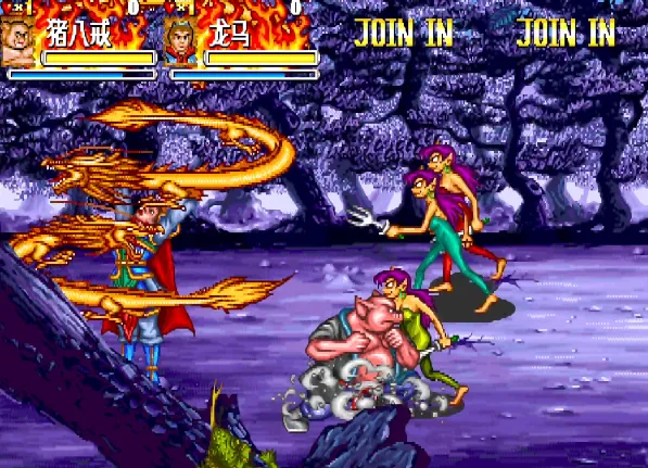 第二关的红孩儿变成了龙马。而且我方人物在蓄气后的招数有了些改变,孙悟空、猪八戒和沙和尚跳起来的招式变成了跳起来的耗血招,让人感觉挺新鲜的!文章源自阿飞游戏网-https://www.afeigame.cn/14883.html