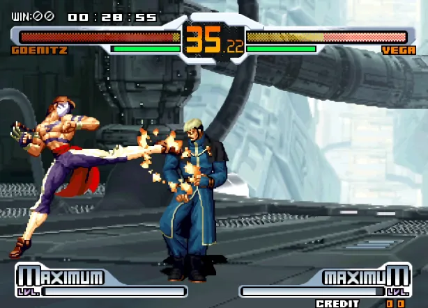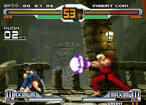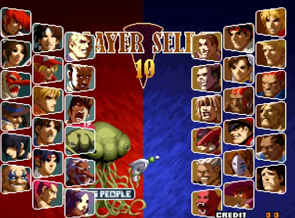 《拳皇VS街霸》是SNK Playmore联合CAPCOM公司于2003年发行的一款横版格斗 游戏,游戏中除了拳皇和街霸中的角色,还加入了侍魂中的角色。文章源自阿飞游戏网-https://www.afeigame.cn/15011.html