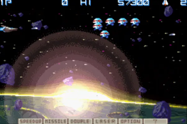 《宇宙巡航机》是科乐美(KONAMI)制作发行于GBA掌机平台的一款横版射击游戏,游戏最初发行于FC家用机平台上,GBA上的版本是后来移植的版本,相对于FC上的版本,GBA上的游戏在画质上得到了很大的提升。文章源自阿飞游戏网-https://www.afeigame.cn/15730.html