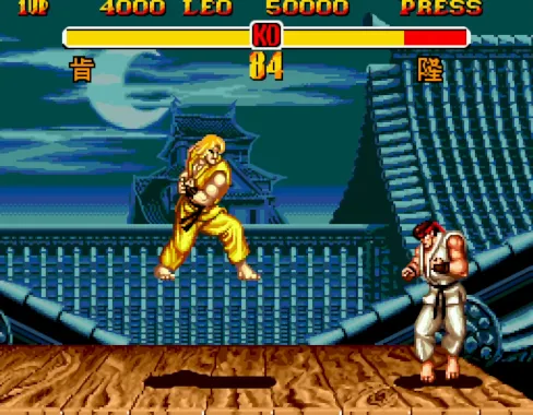 《超级街头霸王2》俗称“十六人街霸”。系列从本作起移师CPS-2基板,人物头像和音乐全部重制,增加四位新人物嘉米、飞龙、T·霍克、迪·杰。人物必杀技也做了相当大的改动,如隆增加了一招“火焰波动拳”,肯的重升龙拳增加火属性等等。而且本作在系列中第一次加入了诸如连击、破招等现代格斗游戏的要素。但是由于制作匆忙,角色之间的平衡性较差。文章源自阿飞游戏网-https://www.afeigame.cn/15878.html
