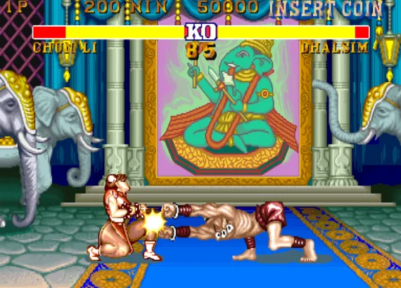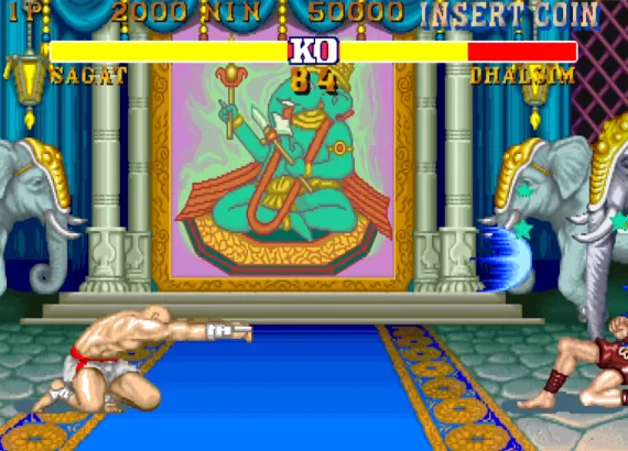 《街头霸王2》的一个不错的改版,游戏的画面和文字以及人物都有一点偏向黄金的颜色,所以这个版本也被玩家称为黄金版。和屠龙和降龙类似,这个版本的很多角色用必杀的时候会伴随着好几个金黄色的波动拳攻击对手,如果放慢波的话,屏幕上将满是我方的波动拳,对手也无从躲闪,除了四大天王中跳得比较高的警察和铁面外,其他的角色就等着被KO好了。游戏的画面很好看,比原版的颜色要好看!文章源自阿飞游戏网-https://www.afeigame.cn/16128.html