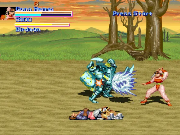 游戏中的攻击距离是比较远的,玩家和地方都一样,游戏还加入了必杀和超必杀系统,玩家可以通过搓招释放必杀和超必杀,需要消耗一定的必杀气槽。不过超必杀在没有气槽的气不够的情况下会扣除血量来释放,而且还需要很多,有点得不偿失。还有游戏的打击略写不足,不过游戏在整体的新意上还是值得玩一玩。文章源自阿飞游戏网-https://www.afeigame.cn/16375.html