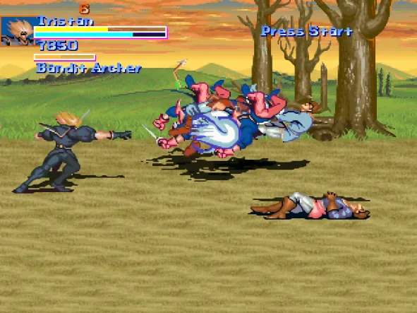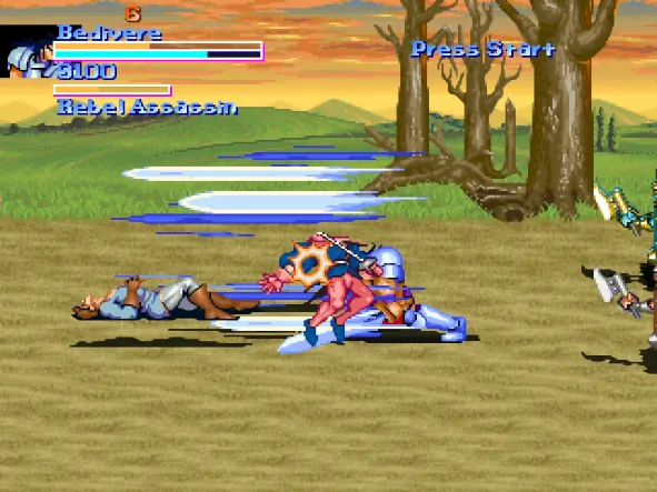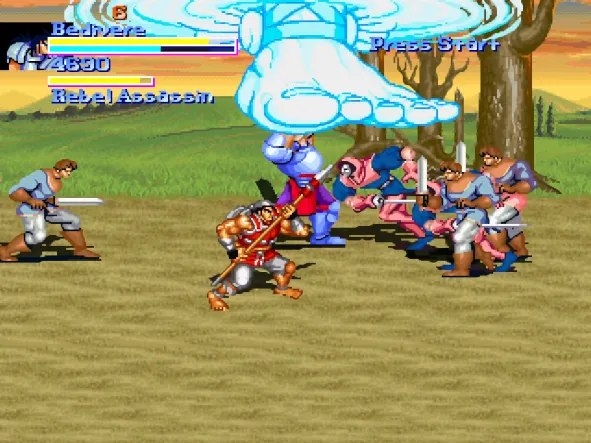 《圆桌骑士重制版》是外国玩家用OpenBor做出来的一款独立的新游戏,游戏中主体使用了圆桌骑士的素材,不过游戏中也加入了其他游戏中的素材,我方可选人除了圆桌骑士中的原来角色,还可以选择游戏中的BOSS和三国志中的美美,和赵云。不过赵云是使用圆桌骑士中的大剑骑士小兵改的。游戏中的场景也是来自各个街机游戏中的场景。文章源自阿飞游戏网-https://www.afeigame.cn/16375.html