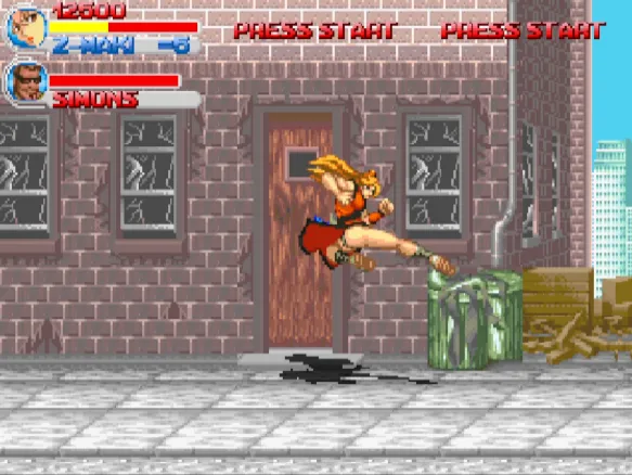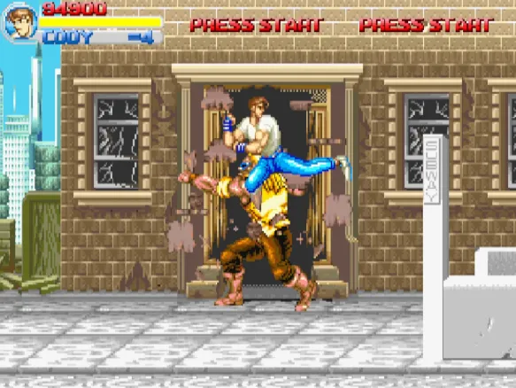 一个不错的以快打旋风为主题的动作游戏,游戏的风格和界面非常像是GBA上的快打旋风。游戏的色彩非常的鲜艳,基本上完美的重现了街机上的所有的关卡。游戏的选人界面上有7个角色,但实际上一开始只能选4个角色。除了凯、柯迪、哈格市长的原版三人组之外,还可以选一个空手道美女。剩下的3个角色武神凯、囚犯柯迪和手棍美女不能选,不知道通关后能不能解锁。游戏的关卡顺序和街机是一样的,但是游戏的难度要比街机要容易,基本上熟悉快打旋风的玩家都能轻易通关。文章源自阿飞游戏网-https://www.afeigame.cn/16395.html