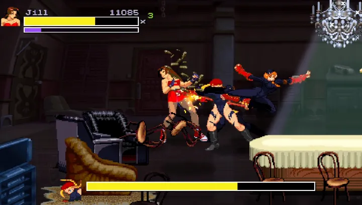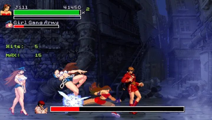 一款以拳皇人物为主题制作的一款横版动作游戏,游戏中加入了一些街霸游戏中的人物。我方选择一个武术大师不停的参加武术大会,只要把版面上的敌人全部打倒即可获胜。游戏一共好像只有6-7关,游戏难度也不是很大,通关后可以获得武术之道。文章源自阿飞游戏网-https://www.afeigame.cn/16573.html