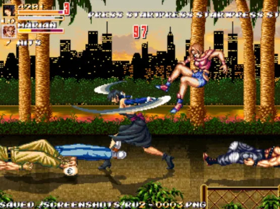 这个游戏是在怒之铁拳Z-格斗回归上的一个改版游戏。游戏把原版中的人物全部换掉了,主角现在变成了拳皇中的草薙京、岅崎琢磨、侍魂中的色,还有两个叫不出名字的角色,其中一个是乳摇美少女。游戏中所有的敌方小兵和BOSS也都有改动,小兵基本上是都不是怒铁的角色的,大部分来自于SNK的格斗游戏,好比龙虎之拳2、双截龙格斗等游戏。游戏中的BOSS也有很大的变化,第一关的BOSS换成了拳皇中的卢卡尔。