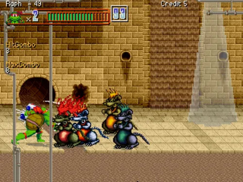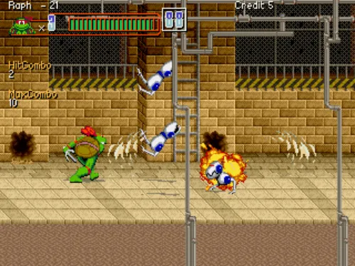 一个很神奇的组合,也是唯一的一个把忍者神龟和忍者蛙组合在一起的游戏。游戏可以选择4个忍者神龟和3个忍者蛙的角色,所有的角色都保持着在各自游戏中的招数。但是敌方的小兵也是由忍者神龟中的大脚帮忍者和忍者蛙中的袋鼠组成。游戏的打击感还算是不错,两种游戏的结合给人一种新奇的感觉,喜欢这两款游戏的玩家不要错过!