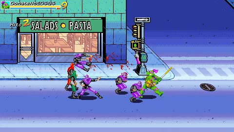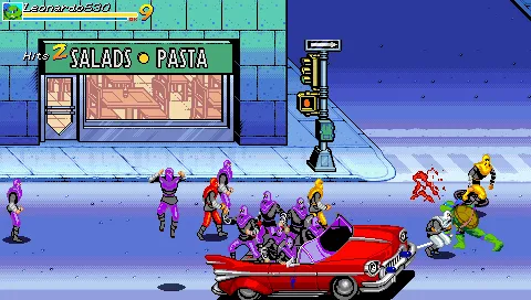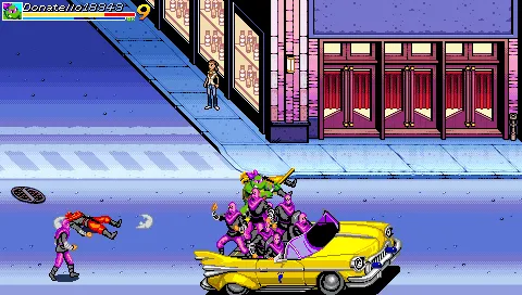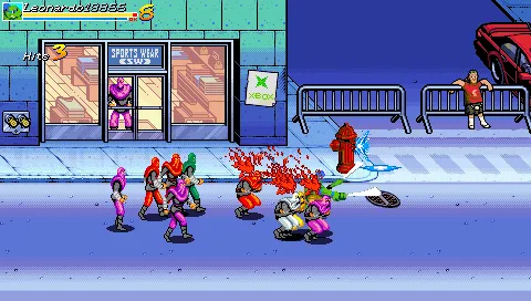 这个《忍者神龟》的游戏其实和《忍者神龟:赤空之战》非常的像,只不过这个版本是宽屏版的,而且好像和赤空之战相比,有几个小关的差别,好像赤空之战中没有鼠王这个关卡。一直很遗憾这个忍者神龟游戏只有3个关卡,做得还是很不错的。无论是打击感还是画面都是上乘之作。
