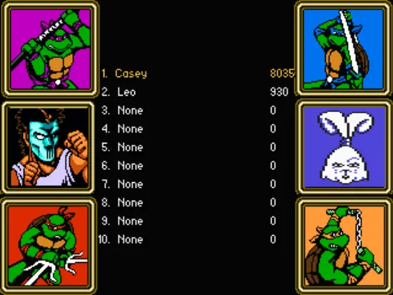 一个蛮有创意的忍者神龟游戏,游戏除了可以选择四只神龟外,还加入凯西这个角色。不过游戏应该还是一个半成品,人物的攻击判断比较差,打击感也不是很好,喜欢忍者神龟的玩家可以试试这款游戏。