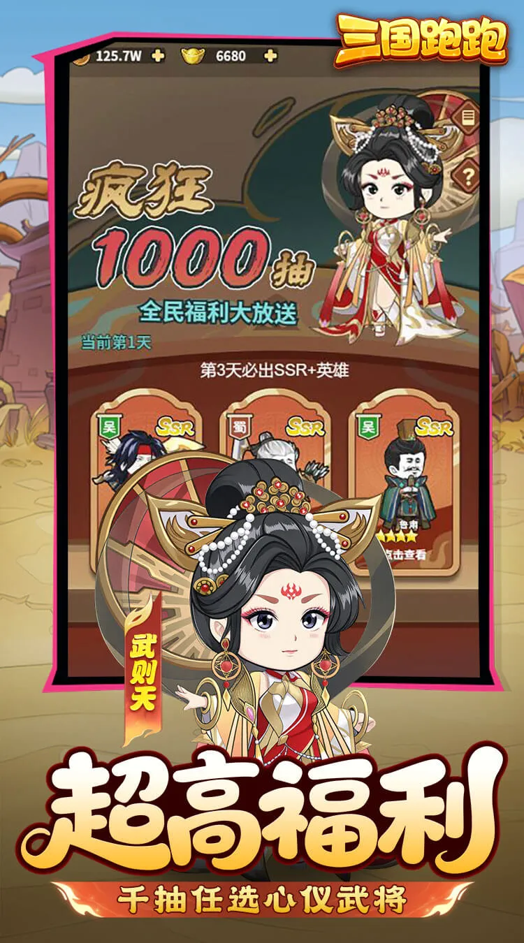 全新0.1折魔性表情包卡牌《三国跑跑》已就位,上线即领SSR神将及橙装,登录送1000抽,每天免费领取648充值,躺平挂机也能招兵买马,这里有接着奏乐接着舞的皇叔,也有盖饭的曹操和瓜保熟的关羽,海量有梗武将等你招募,助你轻松称霸三国,速来开启你的三国征程吧!