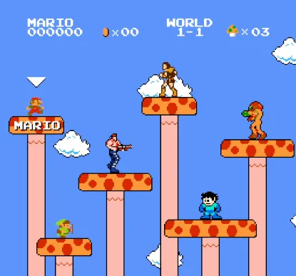 《超级马里奥》是一款非常经典的小霸王游戏机上的休闲闯关游戏,吃蘑菇,踩乌龟,80、90都对这个游戏有着非常深刻的记忆,陪伴多少人度过了童年。此版本加入了很多其他游戏角色,魂斗罗、恶魔城、等等。