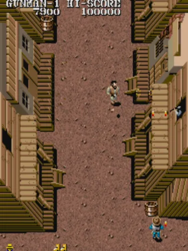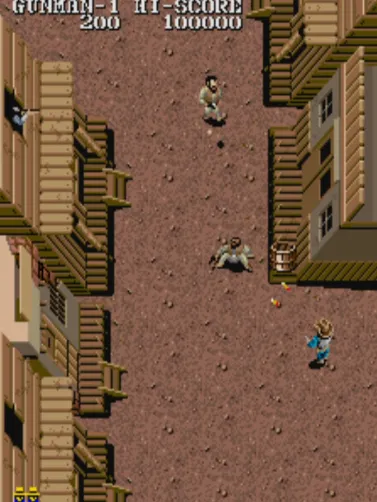 《荒野大镖客》是一款纵版射击游戏,估计很多小伙伴对FC版本的比较熟悉,街机版的没接触过,不过街机版的跟FC版本上的比起来,画质,音效都强了很多,街机版的射击分三个按键,每个按键射击方向不一样,初次上手会觉得不习惯,需要多玩几次去适应,熟悉了以后不但方向可以及时调整成最佳角度,一般是不会给敌人太多开枪的机会的。