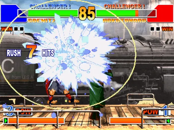一共可以选择68个角色,游戏的风格是采用《拳皇98》的风格,除了可以选择98中出场的所有人物之外,还可以选择很多拳皇后期版本出现的人物以及饿狼传说和侍魂中的人物。娜可露露、大蛇、达克等角色都有出场。游戏的格斗场景非常丰富,血条和气条的方式也是采用98的方式。