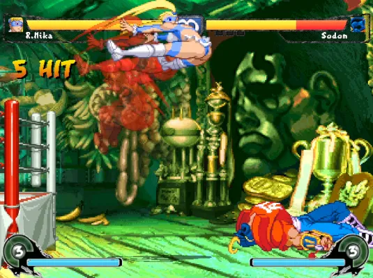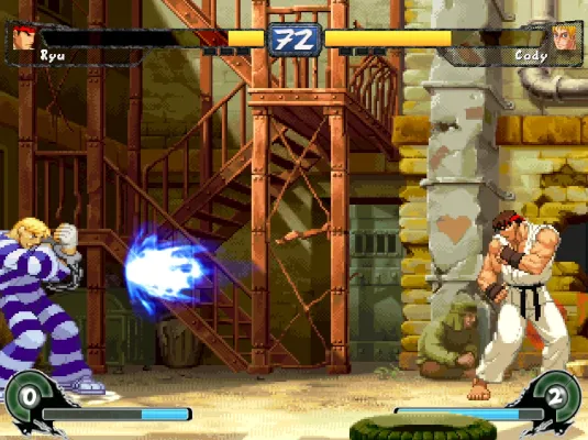 一个整合得很不错的格斗类游戏,游戏名为《街头霸王:极端》,所以大部分的角色也是来自于卡普空的街霸系游戏。游戏的选人界面也全是以街霸的人物为主,但实际上这个游戏可选的人物远比选人界面上表现出来得要多。很多别的游戏中的人气角色也可以进行战斗。包括了拳皇中的不知火舞、怒之铁拳中的布雷兹等,还有快打旋风中的角色。游戏在打击感和效果方面都很好,整体来说,是一个非常不错的格斗游戏!
