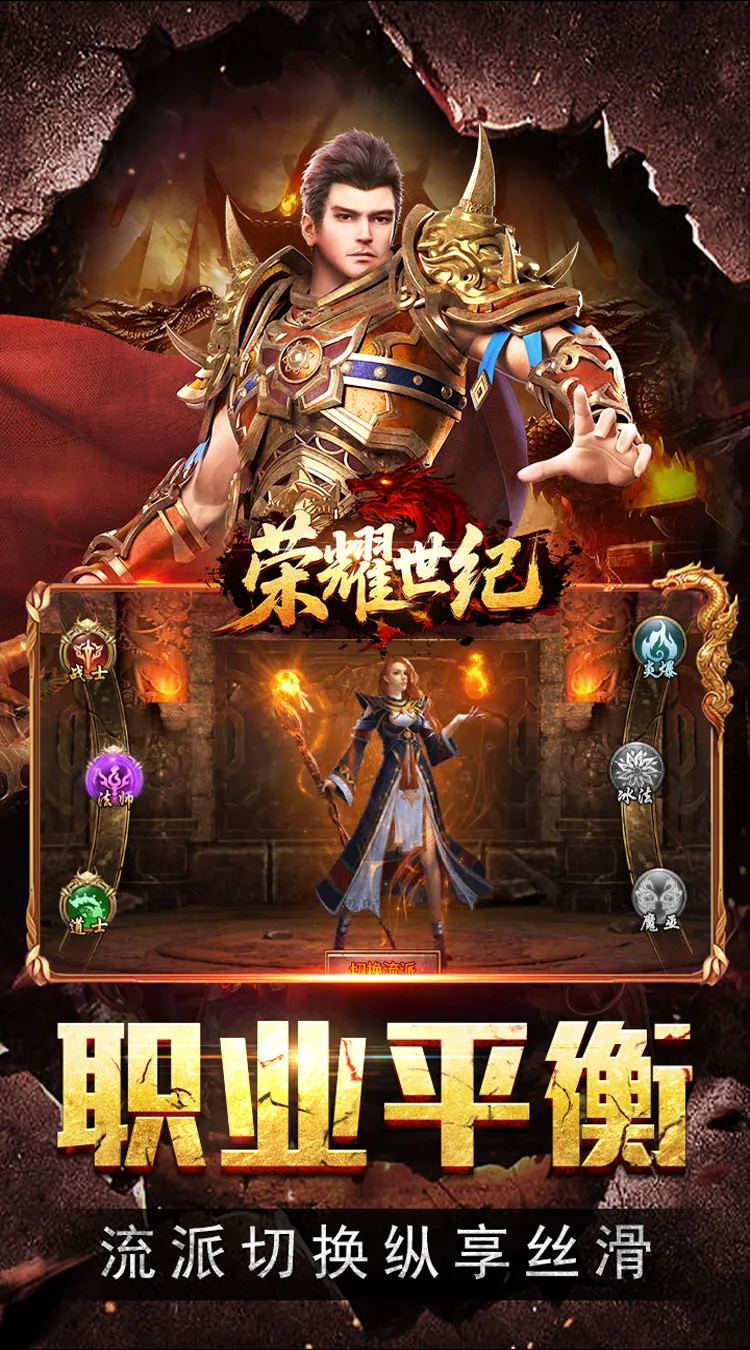 《荣耀世纪(神歌复古九职业)》是一款全新三职业九流派职业的复古微变传奇版本,职业技能细分,各有侧重。同时装备可自由搭配,狂刃、龙鳞、刺影、炎爆、冰法、魔巫、灵道、愈医、御兽等众多流派搭配玩法,还结合了打金、灵宝、沙城争霸等玩法。玩法多,探索性强,上手简单,长久耐玩,装备、材料全靠打,白名小怪也会掉顶级装备,搬砖、休闲、激情都适合,带你领略不一样的传奇,快快加入与兄弟们一起征战吧!