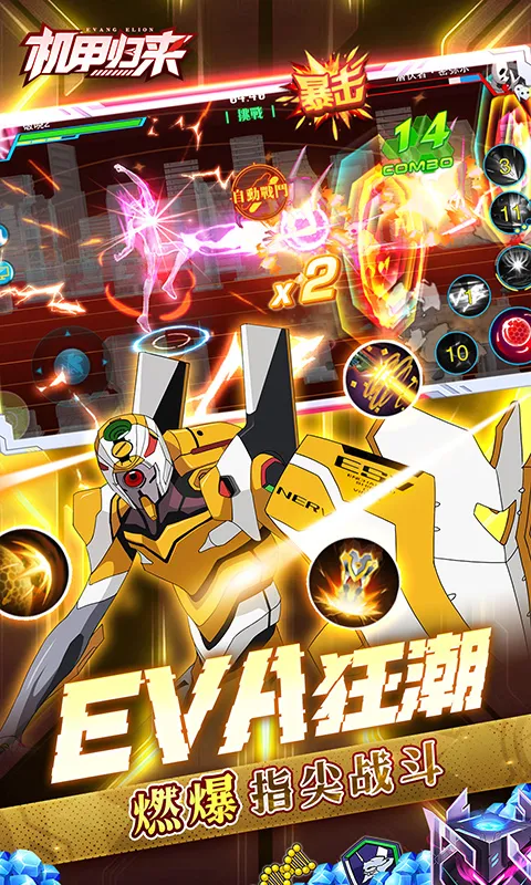 《机甲归来》是一款集策略、动作与角色扮演于一体的创新横版ACT手游。游戏以经典科幻动画EVA《新世纪福音战士》为背景,将玩家带入一个充满未知与挑战的机甲世界。在这里,你将扮演一名勇敢的驾驶员,驾驶着各式各样的炫酷机甲,与强大的使徒进行激烈战斗,守护人类的未来。游戏不仅拥有精美的画面和震撼的战斗特效,还融入了丰富的剧情和多样的玩法,包括机体收集、养成、竞技场对战、公会战等,让你在享受战斗快感的同时,也能体验到深度养成和社交互动的乐趣。快来加入《机甲归来》,与全球玩家一起,驾驶机甲,征服未来!