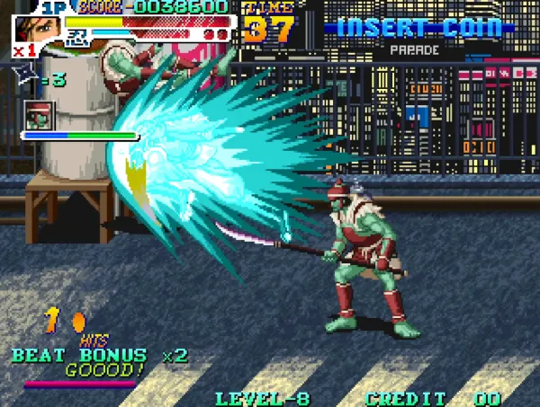 10、最终关京都。修改第二场景的中国BOSS。原版为1中国BOSS,2变异武士。新青版修改为3中国BOSS。修改第三场景的蝙蝠老头。原版为2个蝙蝠老头,新青版修改为2火鸟。