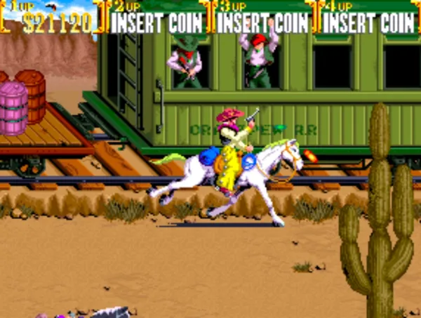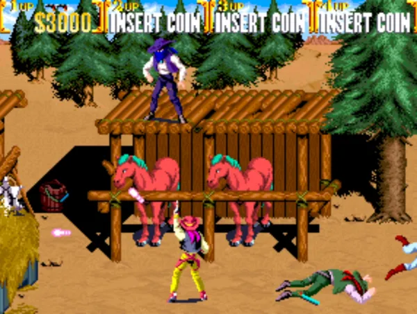 《落日骑士》是一款经典的街机游戏,落日骑士是把街机上一款经典的过关射击游戏又名西部牛仔,游戏的故事背景是美国的西部,传说中的西部牛仔的传奇故事;共有四个牛仔可选。游戏死亡系统类似魂斗罗,一沾即挂所以需要有很强的技巧性。游戏游戏风格就像美国电视里的西部片一样,不过还是有搞笑的地方,当玩家被火烧到了或是没东西砸了,人物会出现非常卡通的动画非常搞笑。