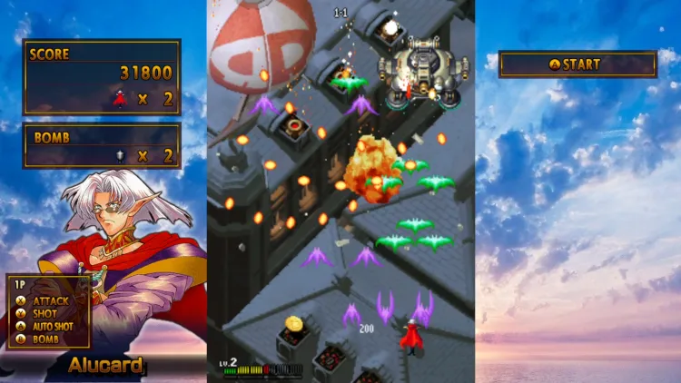 《武装飞鸟2》是一款垂直滚轴飞行射击类型游戏,1998年登陆街机平台,有一个关于“古代魔法药剂”的故事背景。玩家可以在中场休息和boss出现时看到剧情展开的对话。