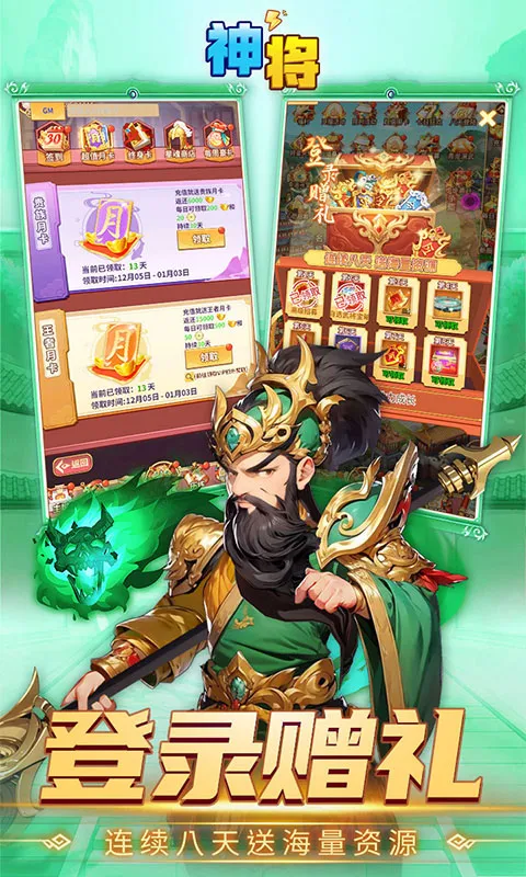 【神将】一个融合了经典三国历史与奇幻元素的0.1折卡牌冒险世界。创新三国老虎机,全新魂将开箱系统,玩法新颖福利多,免费送自选2000连抽,累积登录送神魔武将,连续八天送海量资源!让我们一起穿越至东汉末年,亲历那段波澜壮阔的历史,以独特的视角见证并影响三国时代的风云变幻!