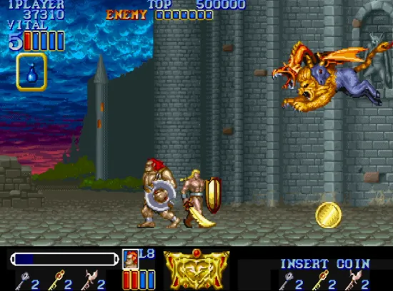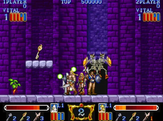 游戏的主角有两个,一个是拿刀的战士,一个是拿长斧的战士,游戏中经过监牢可以进出不少辅助性角色,各有长处,最历害的是法师,还有像忍者、女战士、飞龙和巨人等也很历害!