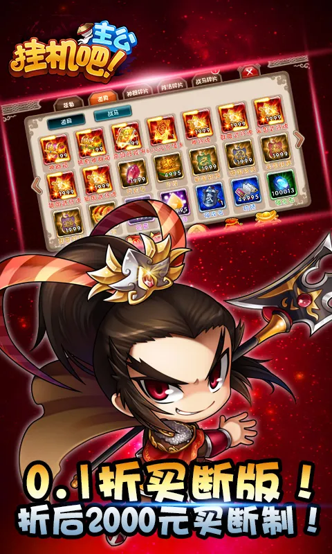 《挂机吧主公-0.1折买断版》是一款集聚休闲、策略、养成与一身的三国卡牌游戏;玩家能够和一众Q萌可爱的三国名将一起驰骋在三国的绝世故事当中;此版本为买断版,小额充值即可获得超高返利,期待与各位主公一起谱写三国传奇故事!!!