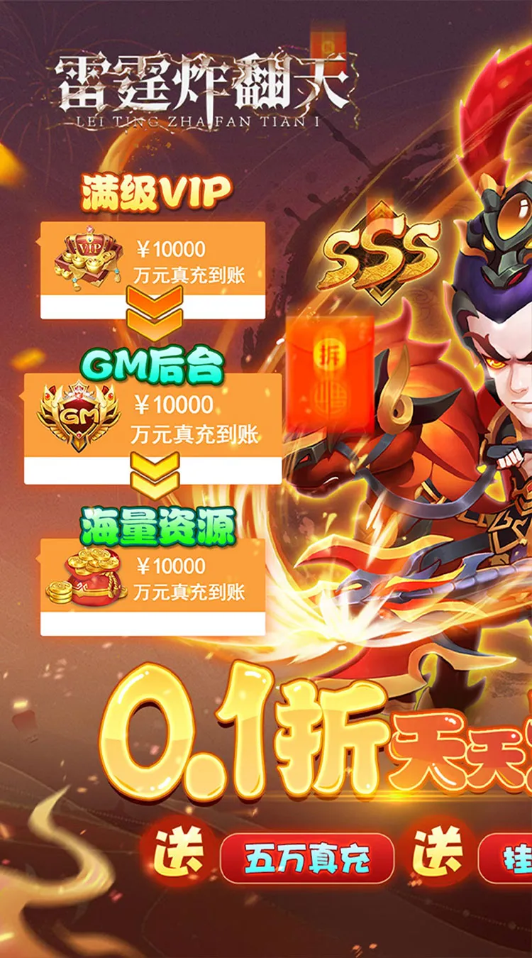 3、升级送五万元现金充值,免费激活满级GM,特权商城全1元宝