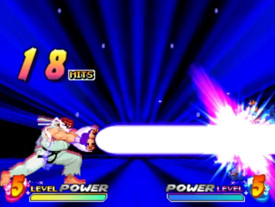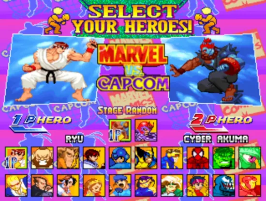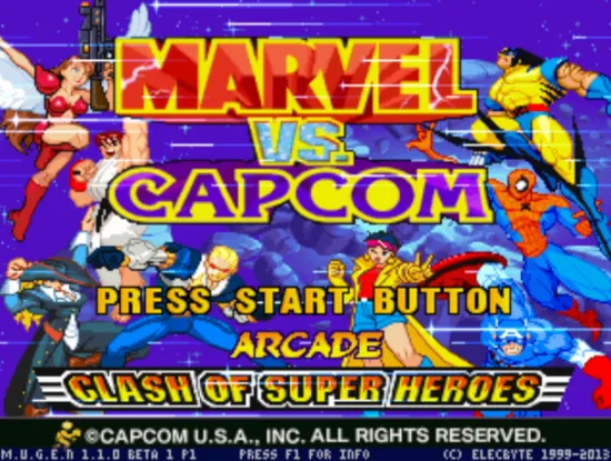同名街机游戏的重制版,这个游戏基本上保持了街机的风格和人物的角色。卡普空中这边出场的都是一些人气的角色,包括街霸中的隆、春丽,洛克人,名将等游戏的角色。漫威这边的复仇者联盟和X战警的角色也有出场。相比于街机,这个游戏中多了一个机器人豪鬼的角色,看上去很酷,人物招式也很多。