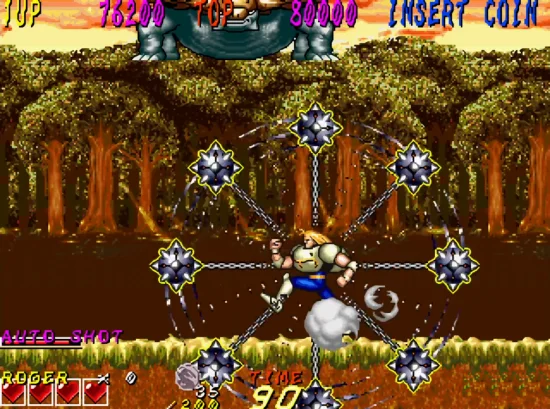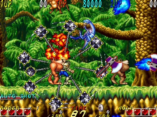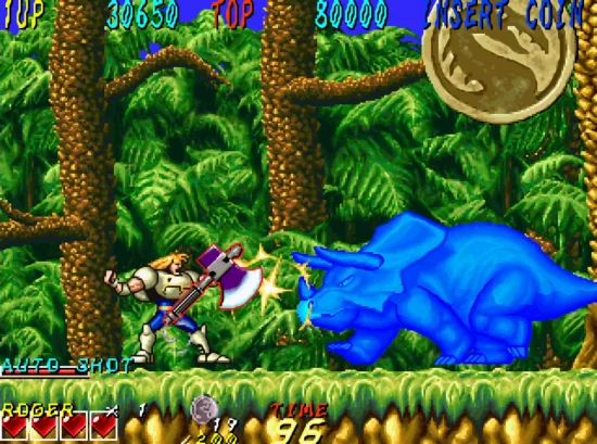 《森林大王》又叫“恐龙时代”是发行在街机上的一款横版动作闯关游戏,游戏中的怪物都是恐龙,玩家可选两个角色,一个人类,一个狼人,游戏中有三种武器可以使用。