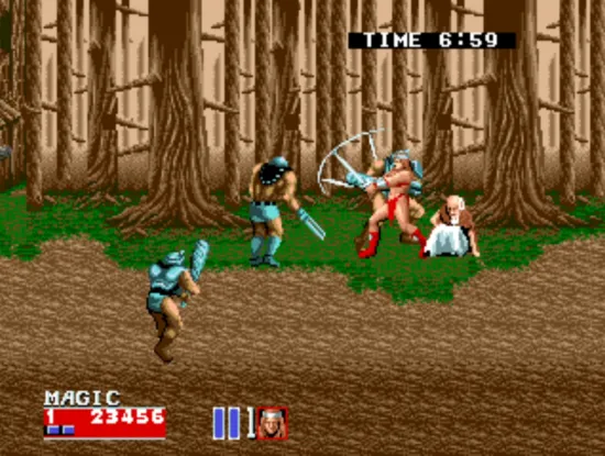 《战斧2》是SEGA发行于街机平台的一款横版动作闯关游戏,游戏可以选择三个角色。街机版是移植MD上的版本,除了大招的特效比MD上的好一些,其他的区别并不是很大。