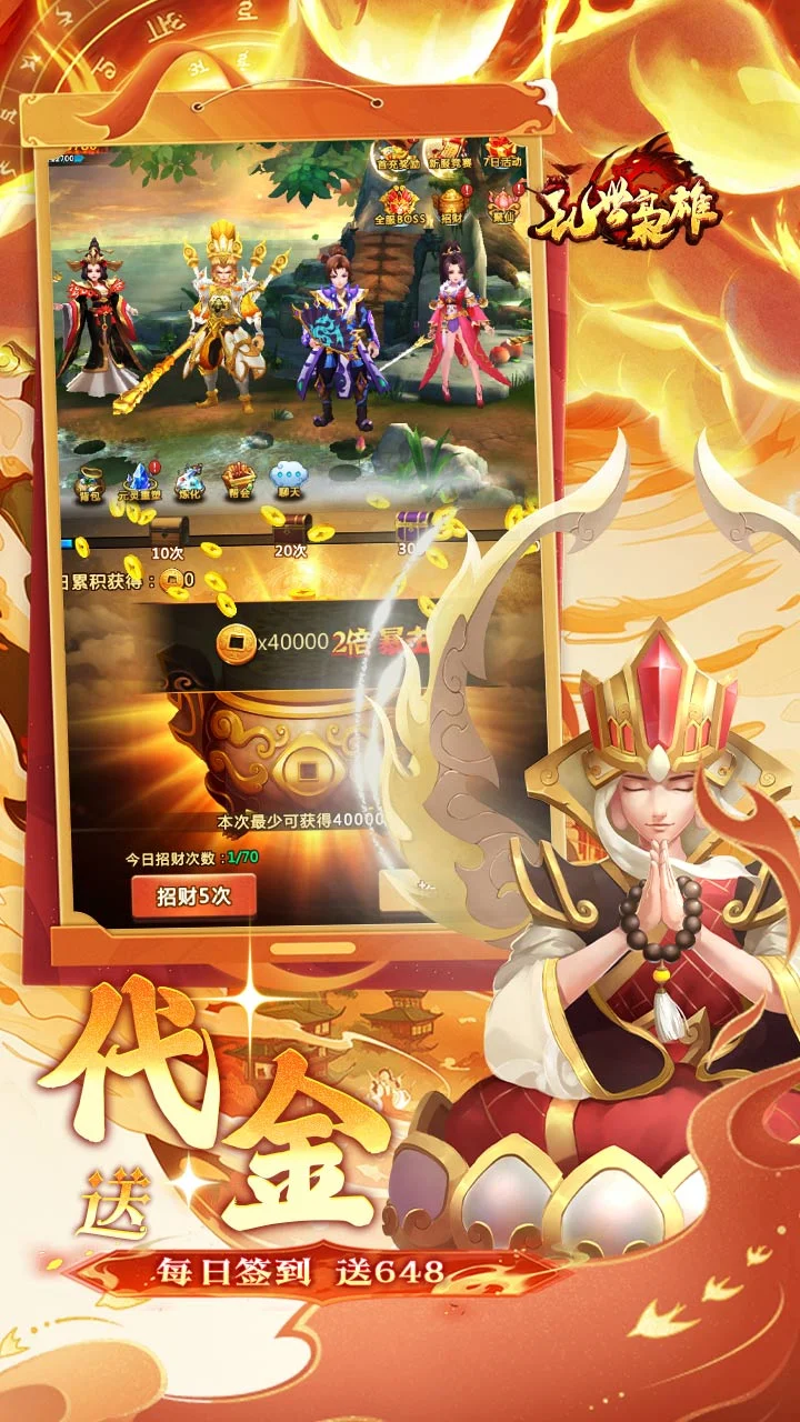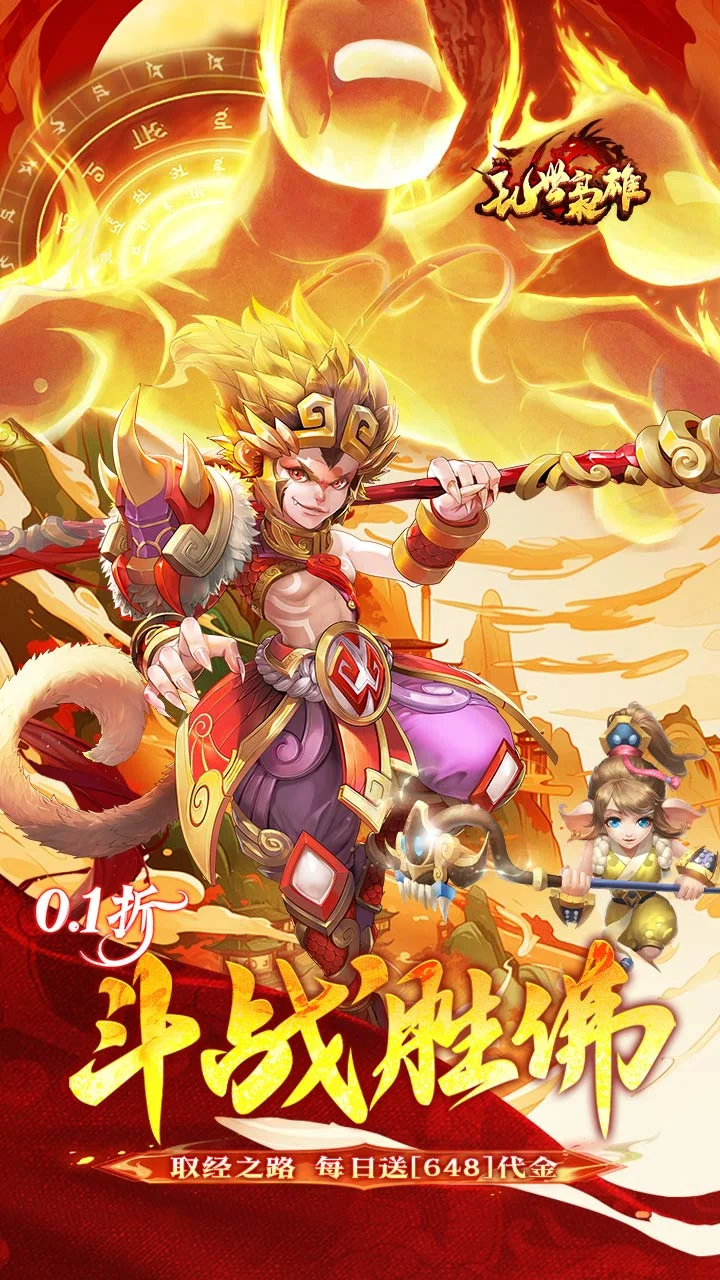 2、0.1折免费开局:创角福利送孙悟空,大圣重临,诛神灭佛!