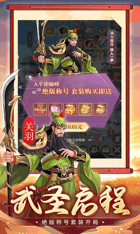 五星神将遍地,零充也能躺赢!三国卡牌游戏《武圣三国》来袭!阵营混战,魏蜀吴奇异五大阵营武将任你差遣;阵营加成,技能、装备、神通等玩法助你多维度养成最强阵容;随时挂机,在线护肝,轻松实现睡后升级!