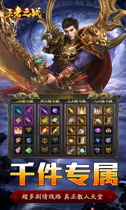 游戏精心设计了多条专属剧情路线,超多风格迥异的地图等你解锁,每一次探索都充满未知与惊喜,保证新鲜感与挑战性并存,带你领略不一样的冒险世界。自由市场,散人逆袭! 千余件独一无二的专属装备,不仅设计精美,且具有极高的保值空间。游戏内设自由交易系统,无论你是孤胆英雄还是团队核心,都有机会通过智慧与努力实现装备逆袭,成就散人玩家的终极梦想。立即加入《王者之战》,在这片浩瀚的星辰大海中,书写属于你的传奇篇章,与万千勇士并肩,共赴荣耀之战!