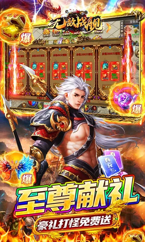 《无敌战舰(狂刀秒切火龙版)》是一款超爽的火龙传奇!上线送切割+500、施毒术、半月弯刀、开天斩、逐日剑法,送自动回收,自动拾取!角色在线、等级转生送提升材料!酷爽福利嗨到爆!超超变传奇,一秒十刀,刀刀切割,享受超爽打金快感,炫酷的技能特效,光柱爆满屏,让玩家享受豪华的视觉盛宴!福利多活动多,散人逆袭为王!大陆多地图多,好玩不无聊!激情对战,热血攻沙,呼朋唤友,一起征战传奇世界!